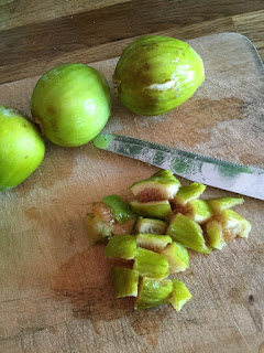 Ho lavato i fichi, gli ho tolto il "picciuolo" e li ho tagliati a piccoli pezzetti.
